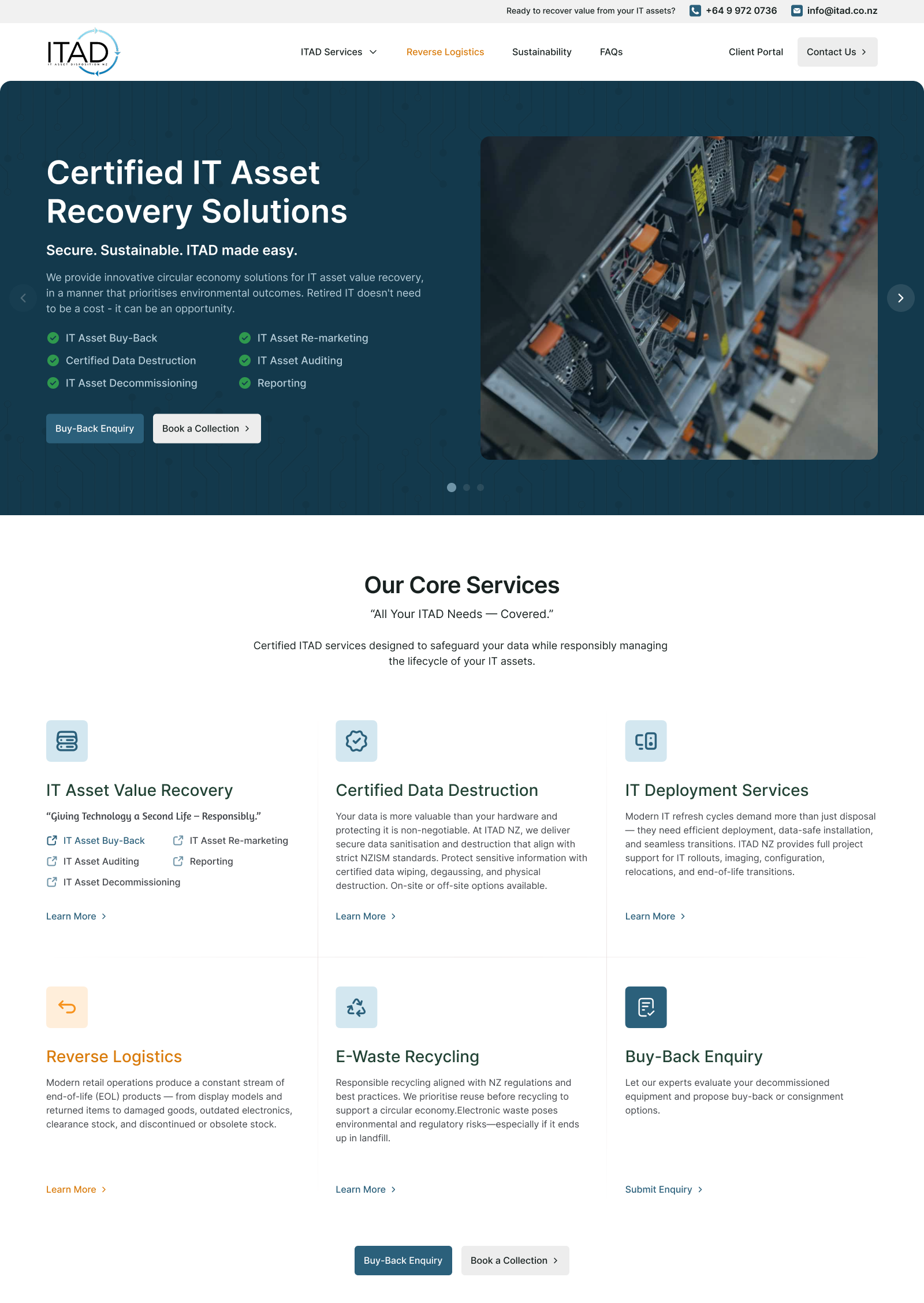 ITAD NZ provides secure, compliant, and environmentally responsible IT asset disposition services across New Zealand. We help organisations protect their data, maximise asset value, and meet sustainability obligations through certified disposal, data destruction, recycling, and buy-back solutions.